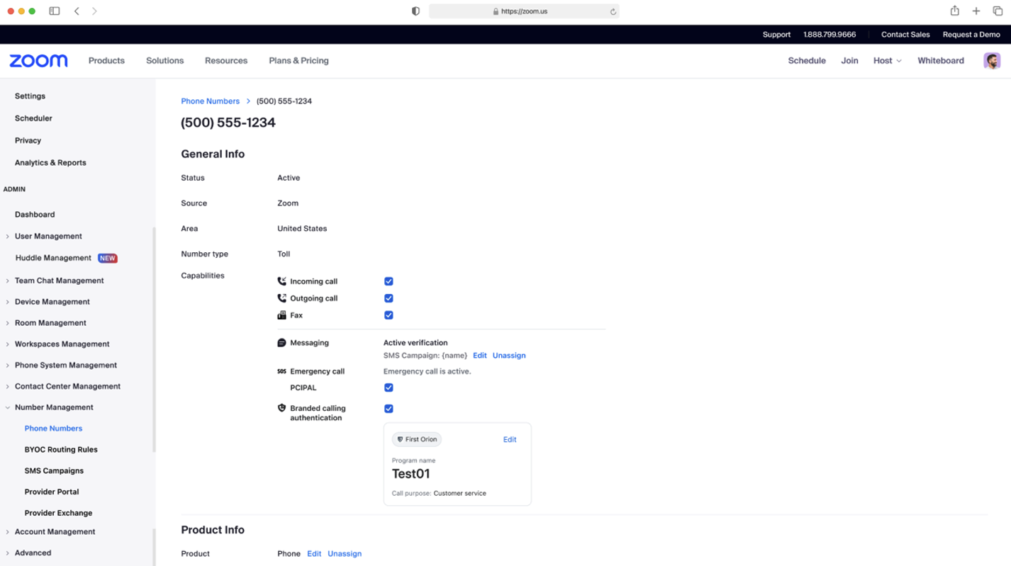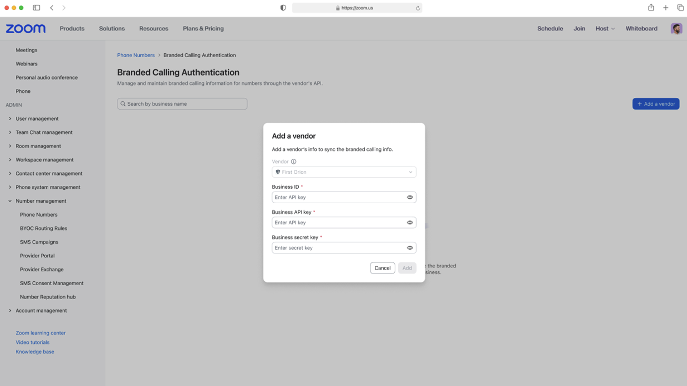 - Add the Zoom phone numbers into the Call Authentication Program.