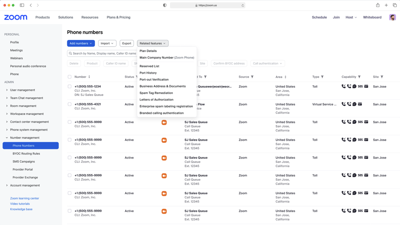 - Zoom Phone account (The account needs Number Management access)